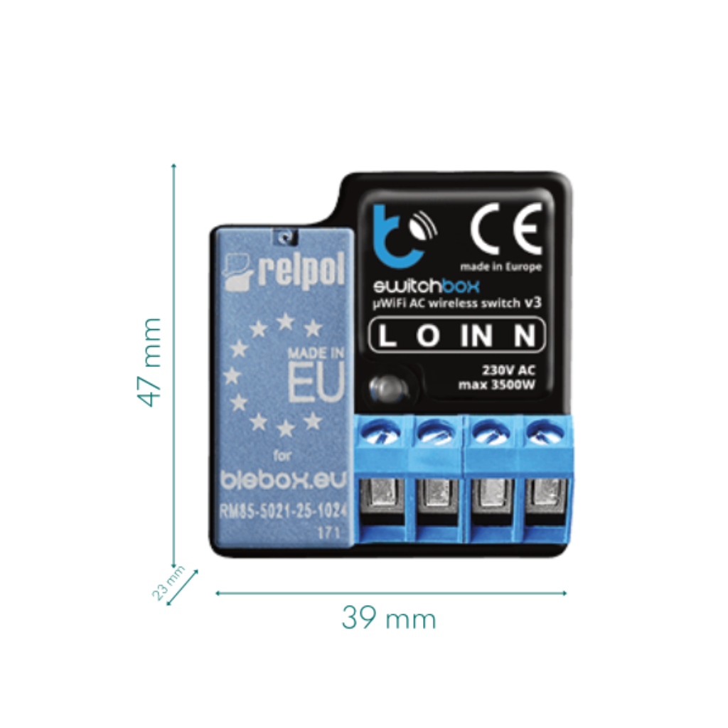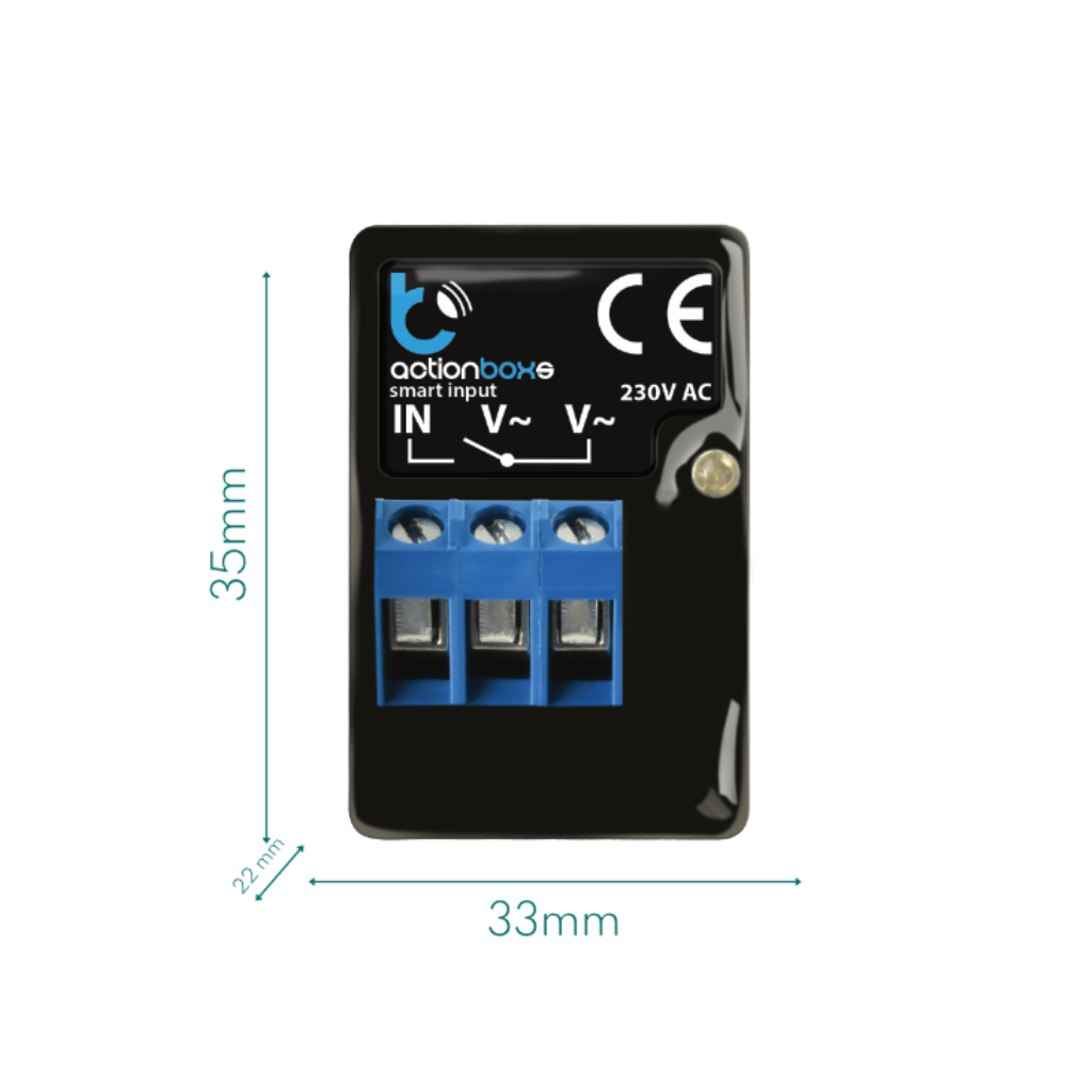 Módulo de entrada 230V para 1 botão, detector de movimento, etc. Utilize até 30 acções para configuração e programação individual, facilitando o controlo de outros controladores Blebox. Pode controlar dispositivos totalmente sem fios a partir de um único local, permitindo o controlo central de outros dispositivos BleBox.