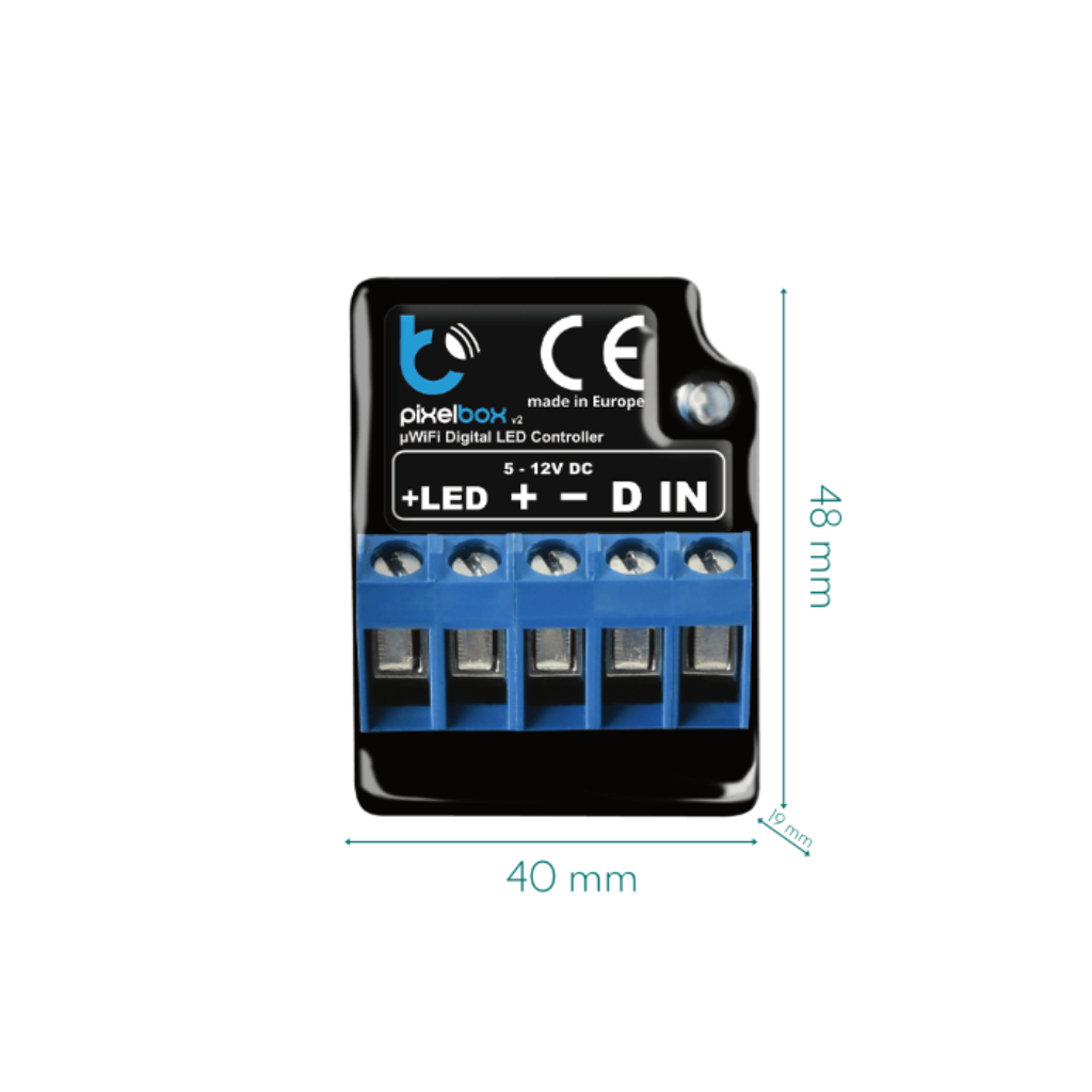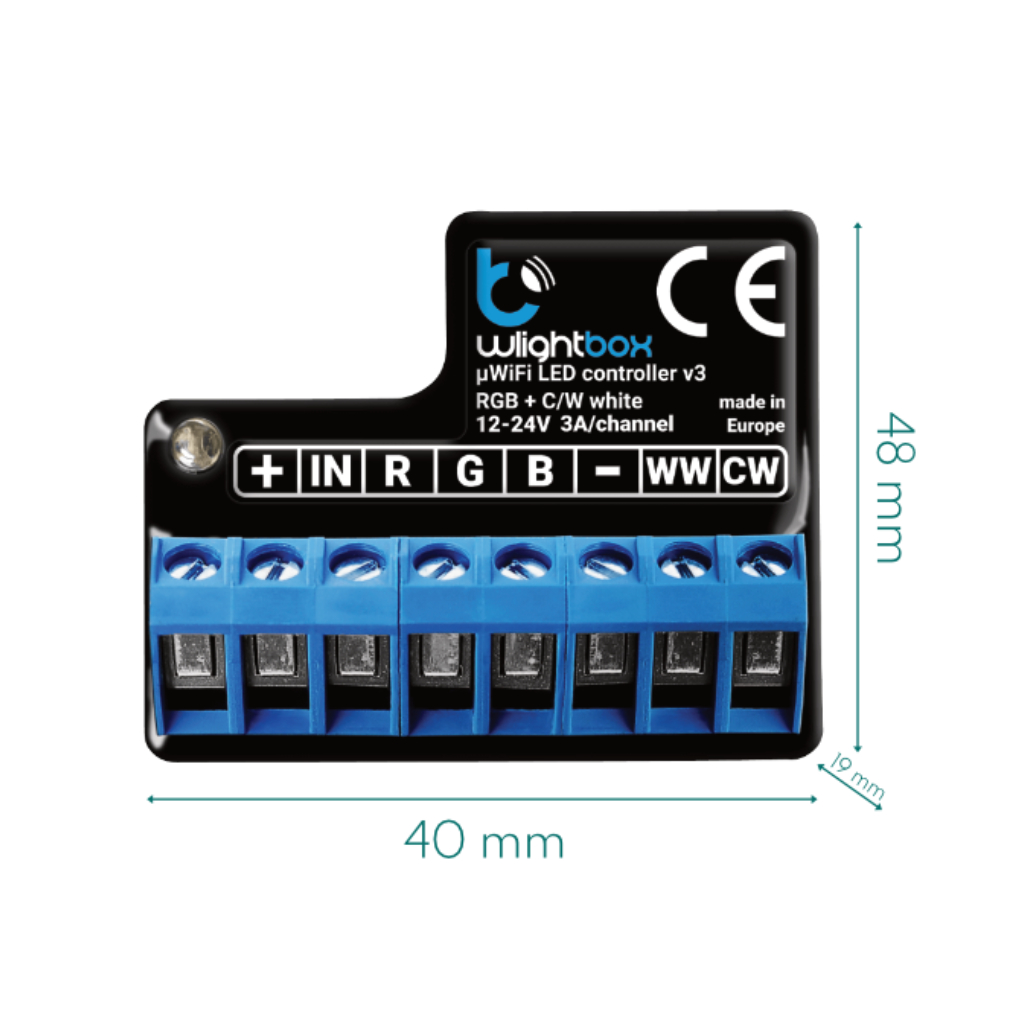 Controle a iluminação led RGBW de 12-24V. Coloque o controlador num local mesmo longe do router e ainda permite ligar um botão de parede à sua iluminação. Pode instalar o controlador num local exposto às condições climatéricas pois ele é IP54..