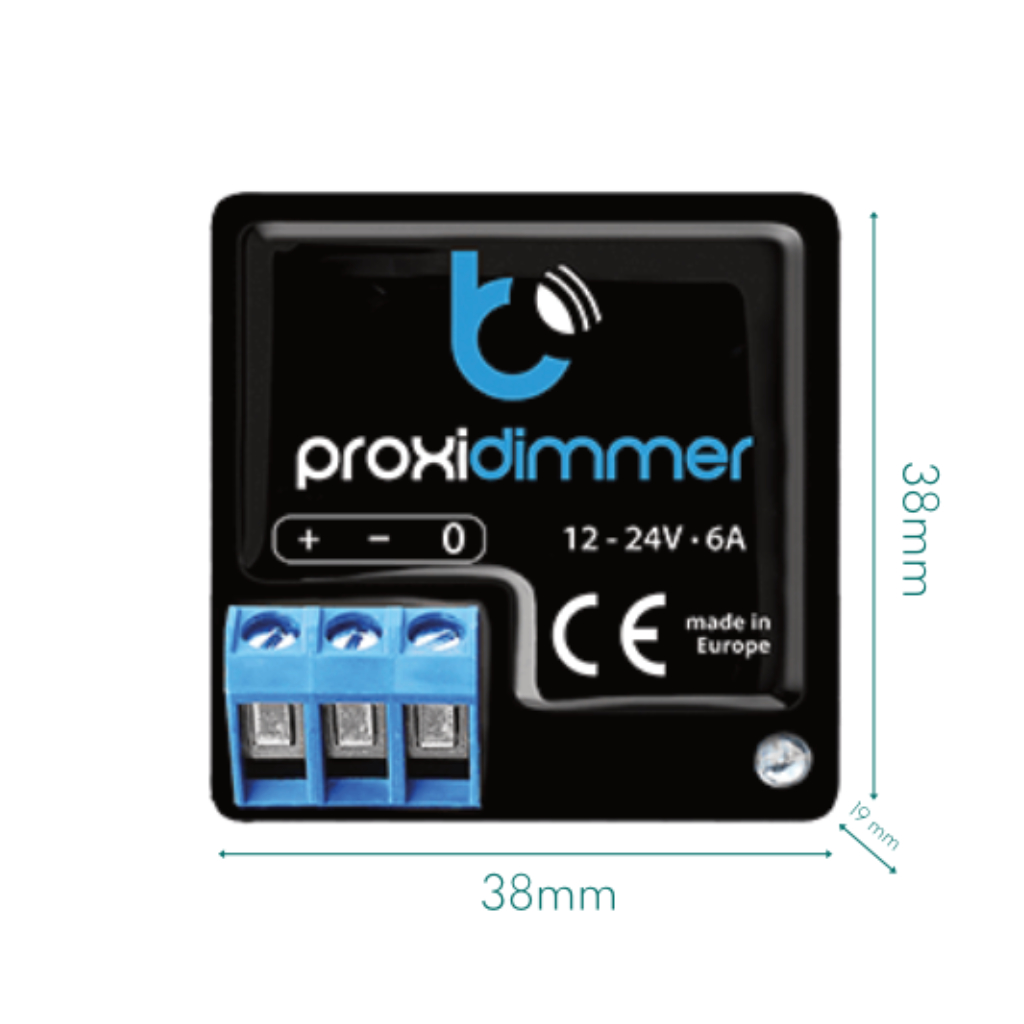 Regulador de intensidade luminosa com função ON/OFF sem contacto para fitas de led 12-24V DC. Controlo por toque ou movimento da mão. Até 3 cm de espessura na madeira, pedra e vidro. Perfeito para ambientes extremamente higienizado pois não requer toque físico.