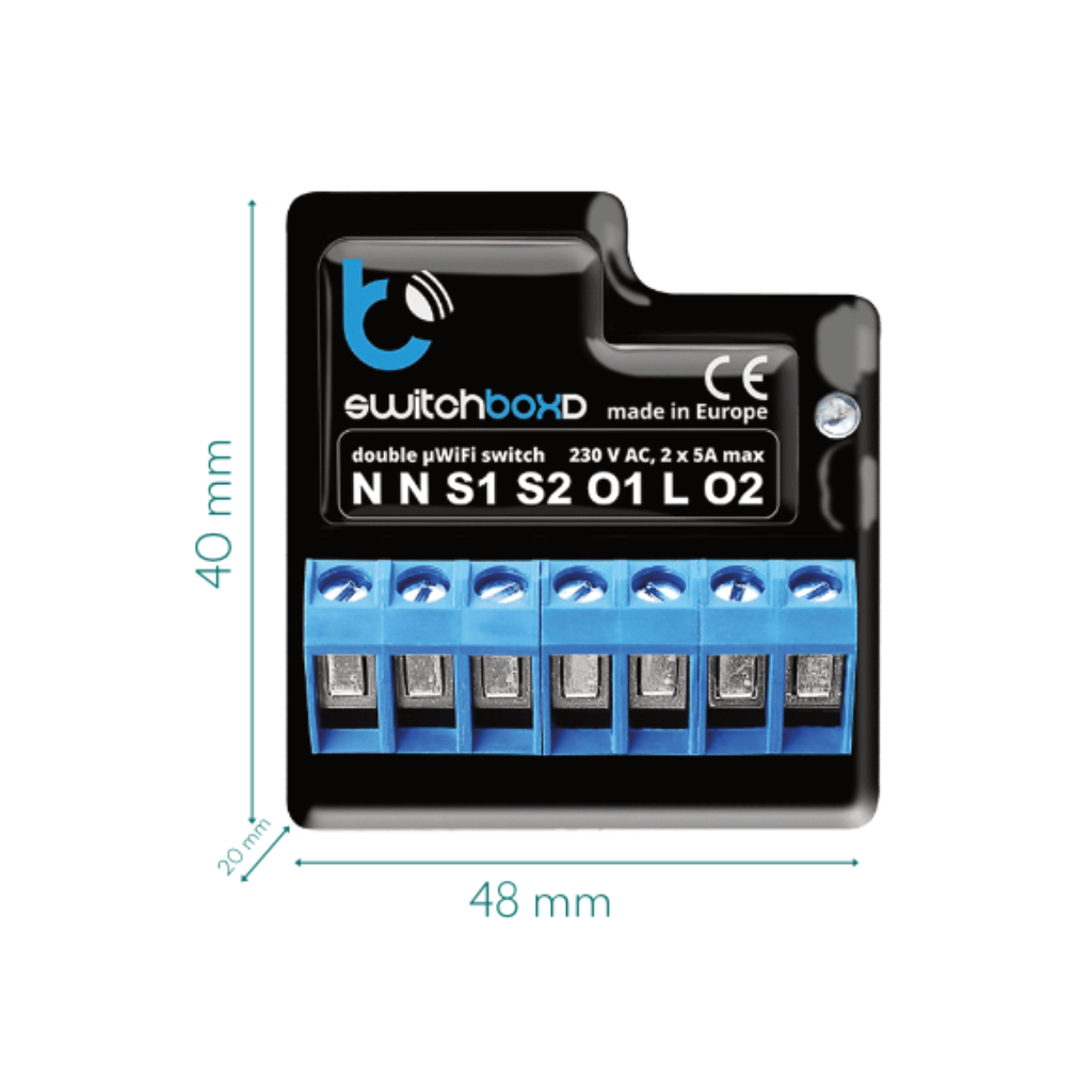 Interruptor duplo ON/OFF ou com temporizador, a 230V AC. Programação, botões e acções. Ligar/desligar em duas cargas independentes com funcionalidade avançada de controlo do tempo. Pode ser controlado a partir de qualquer parte do mundo.