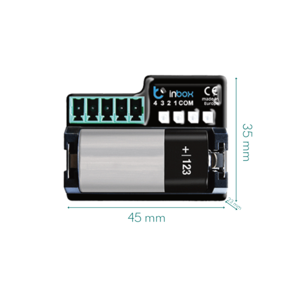 Módulo µWiFi alimentado por bateria com até 4 botões! Não é necessário WiFi. Cliques curtos/longos. Controla muitos dispositivos BleBox.